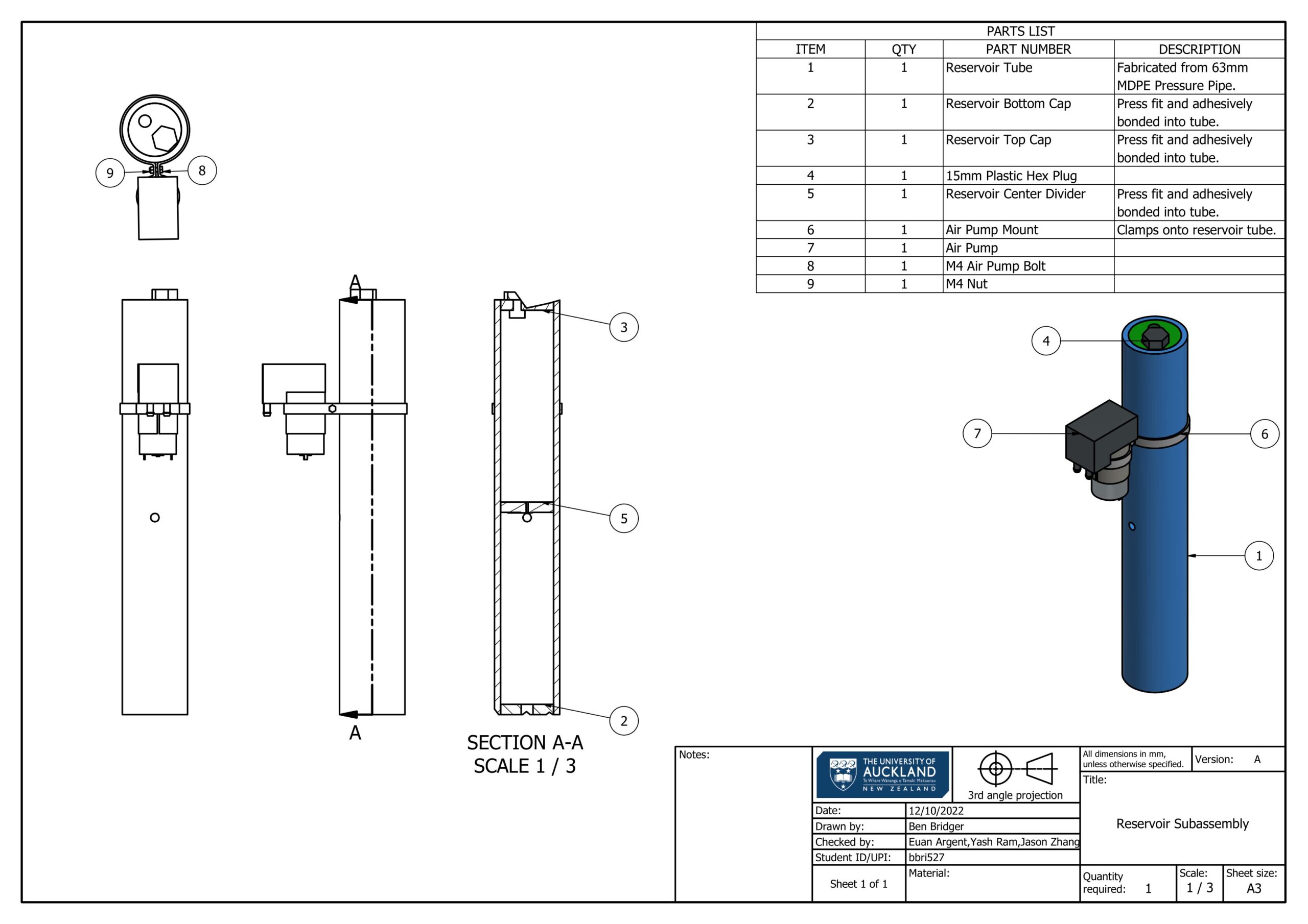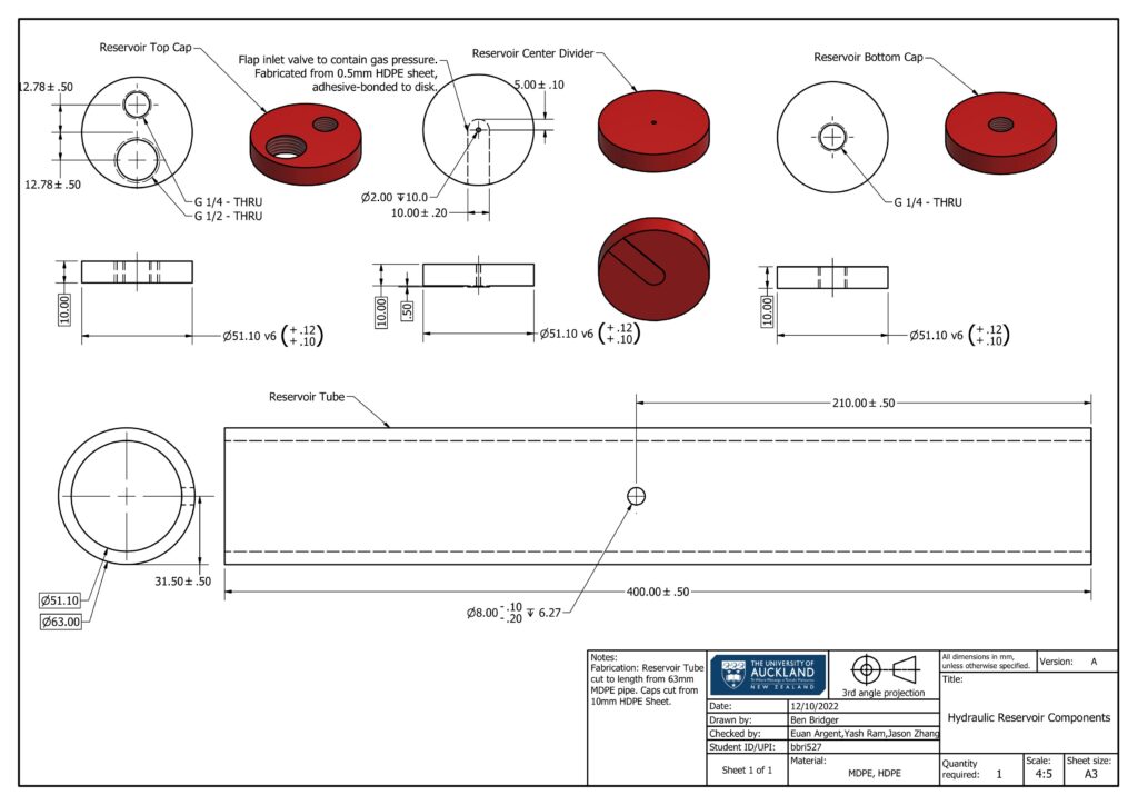 The reservoir was a custom design, using commercially available MDPE tube, with bonded HDPE end caps.