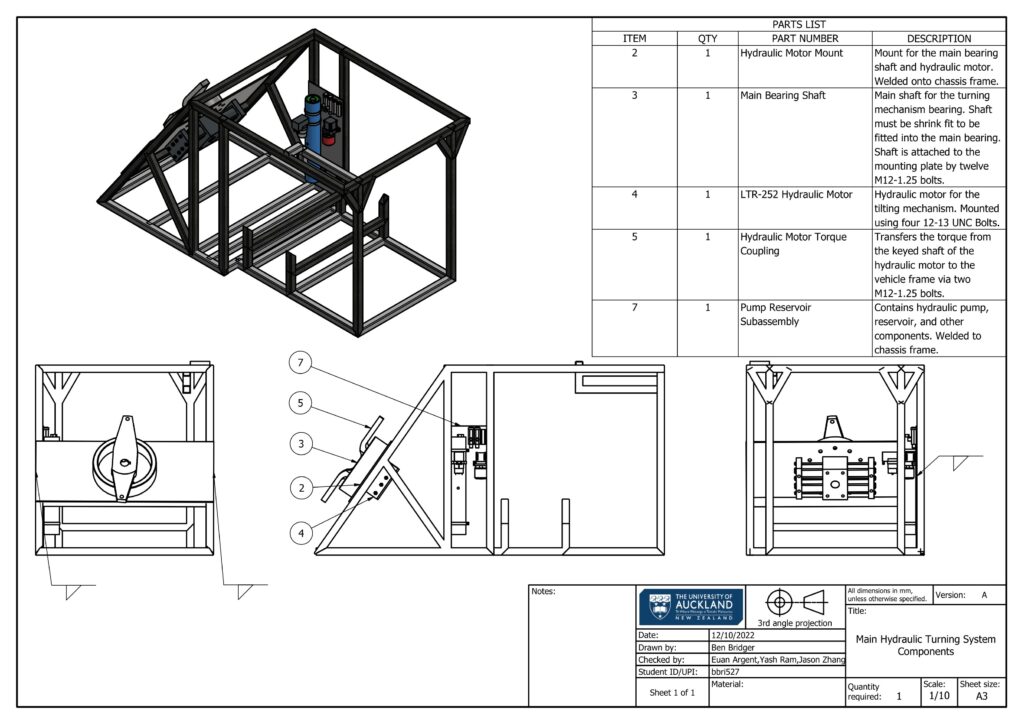 The hydraulic motor used was a Parker LTR-252 Double Rack and Pinion hydraulic actuator. This was selected for its low leakage and corresponding high position-hold effectiveness, as well as its heavy duty bearings capable of withstanding both thrust and radial loads.